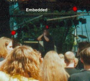 Die Band Embedded eröffnete das Festival mit Ihrem druckvollem Death Metal. Dafür das es gerade erst mal 13.00 Uhr war und es sich ja "nur" um eine Band zur Eröffnung des Festivals handelte, waren schon recht viele Metaller vor der Bühne um von der brennenden Sonne gegrillt zu werden. Die Band überzeugte auf der ganzen Breite mit Liedern wie z.B. "Reborn", "I Am The Cration Of Scream" oder "Final Cremation" einer Monstrosity Coverversion. Leider spielte die Band nicht über die volle Zeit, die vom Veranstalter gestattet wurde, und so endete der Auftritt schon nach etwas mehr als einer halben Stunde. Auf Wunsch des Publikums gaben Embedded noch eine Zugabe um dann die Bühne für die nächste Gruppe zu räumen. (Willy)