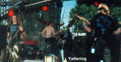 Yattering wurden als "das kräftigste Geballere aus Polen" angekündigt. Naja, das kann ich schlecht beurteilen, aber in eine ähnliche Kerbe wie ihre Landsleute von Vader schlagen die Jungs schon, nur einen Tick progressiver. Mir waren die Grind Attacken aber etwas ZU progressiv. Nicht mein Ding. (Tutti)