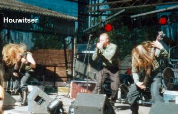 Der Sinister-Ableger (3 Ex-Mitglieder der niederländischen Death Metal Legende) bot eine sehr ordentliche Vorstellung. Bei schönsten Sommertemperaturen gaben die fünf Jungs um die Mittagszeit Vollgas und sorgten für einiges an Bewegung beim Publikum, das sehr zahlreich an der Bühne aufgetaucht war, um der Prügelorgie von Houwitser beizuwohnen. Schon der Bandnahme klingt irgendwie nach Kriegsmaschine, was von der Tatsache, dass sämtliche Bandmitglieder in Tarn- und Army-Outfit auftraten und auch mit Nieten und Patronen gut bestückt waren, nur unterstrichen werden konnte. Soundtechnisch blieb für keinen Liebhaber des Death Metals alter Schule was zu meckern, es wurde das astreine volle Brett geboten. Kurzum waren Houwitser das erste absolute Highlight des Festivals. (Thomas)