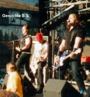 Mit den Genocide Super Stars gab es dann mal eine Band, deren Musik etwas Abwechslung zum Death und Grind Programm bot. Die Schweden spielen eine gehörige Portion Rock'n'Roll a la Motörhead gepaart mit Punk und Grind Elementen. Eine fetzige Sache also, das dachte sich auch ein Großteil des zahlreich anwesenden Publikums und feierte ordentlich ab. Inzwischen war es ja auch früher Abend geworden und es waren schon einige Biere getrunken, da passten Genocide S.S. gut ins Programm. Die Band schien dazu noch sehr gut gelaunt zu sein und hatte auch in puncto Stageacting was zu bieten. Gute Sache, die Festivalstimmung war jetzt allerseits richtig ausgebrochen. (Thomas)
