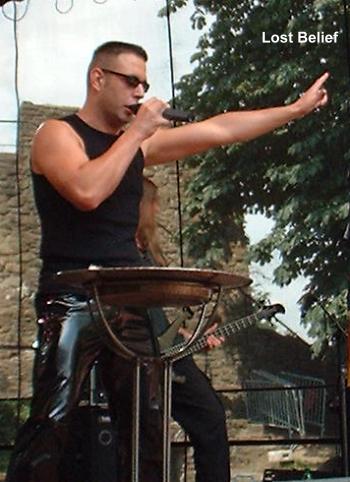 LOST BELIEF boten uns das "Musikalische Tagebuch Des Felix Thorndal". Bei dem Song "Gottesstaat" tanzte der Sänger die ganze Zeit mit einem Kreuz herum. Bei den Song "Bischofswein" reichte man sich im Publikum mehrere Becher mit Rotwein herum. LOST BELIEF spielen Gothrock mit deutschen Texten, der gut rüberkommt. Leider passte diese Band nicht unbedingt zu diesem Zeitpunkt ins Programm des Festivals. (Willy)