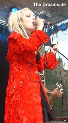 Pünktlich im 13 Uhr stiegen TECHNOIR auf die Bühne. Zu diesem Zeitpunkt war es noch nicht besonders voll im Schlosshof. Die Band um Ex-Inside Sängerin Julia Beyer und Ex-Plastic Noise Experience Keyboarder Stephen Gehring sorgten zur Mittagsstunde mit ihrem Dark Pop im L'aime Immortelle-Stil für düstere Stimmung. Wären die Lichtverhältnisse ebenfalls so 'düster' gewesen, wäre das sicher nicht unpassend gewesen. So blieben immerhin interessante Songs wie "Requiem", "Growing" und das Killing Joke Cover "Love Like Blood" Ordentlich! Wenn dabei natürlich noch keine Stimmung aufkommen wollte. (Tutti)
