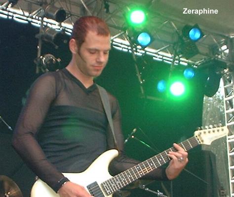 Aus den Überresten von DREADFUL SHADOWS entstand ZERAPHINE. Diese Gruppe bot uns Gothrock mit deutschen Texten. Zeraphine spielten ungefähr den gleichen Sound wie die Vorgängergruppe (Dreadful Shadows) kamen aber nicht an diese heran. ZERAPHINE spielten ganze 40 Minuten und am Schluss des Auftrittes begann das Unglück des Abends. Das Unglück hieß Stromausfall. Gottseidank war soweit schon alles vorbei, so dass es kaum auffiel. Das mit dem Stromausfall fing an, als sich der Sänger schon verabschiedet hatte und die Bühne verlassen hatte, aber die Gitarren hörten auf einmal auf, daran merkte man es dann doch. (Willy)