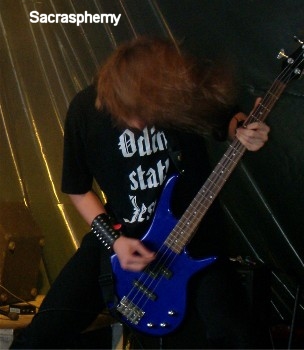 Die undankbare Aufgabe des Openers - bei einem Open Air Festival sind halt noch nicht so viele anwesend - geht dieses Jahr an SACRASPHEMY. Die Band begann auch gleich mit einer Überraschung, da der Darius von NEBULAR MOON hinter dem Mikro steht und hier singt. Mit dem Dark/Black Metal, der hier abgeliefert wurde, war ein guter Einstieg in den noch recht frühen Abend gegeben. Leider habe ich die Ansagen vom Darius nicht verstanden, so das ich keine gespielten Songs wiedergeben kann. Das war auf jeden ein viel versprechender Anfang für dieses Festival, so durfte es weitergehen. (Willy)