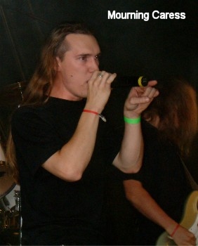Weiter ging es mit melodischem Death Metal aus dem Hause MOURNING CARESS. Da die Band aus dem Münsterland ohne ihren etatmäßigen Sänger angereist ist (der befand sich wohl gerade irgendwo im Ausland, was auch immer das heißt) sprang der Klaus von BLOOD RED ANGEL ein. Die Texte hatte er sich alle draufgeschaufelt und so kann man von einer würdigen Vertretung sprechen. An Songs gab es u.a. "Falling", "A Lifeless Time" und "Creating A Hell". Klarer Fall, das war gut. Sogar so gut, dass es das Schlagzeug glatt zur Hälfte nach dem ersten Song vom Podest gehauen hat :-) (Tutti)