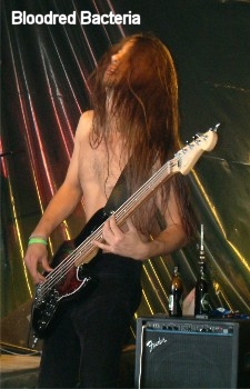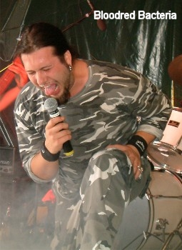 Der Auftritt von BLOODRED BACTERIA war völlig kurios. Die Band spielt heftigen Grindcore. Direkt am Anfang des Gigs ist ein Fell gerissen und so musste man erstmal Ersatz suchen, das hat schon einiges an Zeit gekosten. Doch dann ging es weiter und man hörte eine Stimme nur war kein zweiter Sänger auf der Bühne, nach einigem herumsehen, wurde dann ein zweiter Sänger im Publikum gefunden. Nach gut zwanzig Minuten war man dann eigentlich schon fertig, aber da man ja eine halbe Stunde Spielzeit bekommen hatte, hat man dann noch eine Session eingelegt. Hier hat die Band irgendetwas gespielt und die beiden Mikros sind im Publikumsbereich herumgereicht worden und jeder der wollte, der durfte etwas ins Mikro grunzen. Ganz zum Schluss stand dann wieder die Band auf der Bühne und hat noch ein Liedchen geträllert. Wie schon gesagt ein völlig verwirrter Auftritt dieser Band der mir wenig Spaß gemacht hat. (Willy)