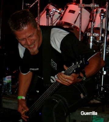 Nun betraten die Kölner von GUERRILLA die Bühne. Auch diese Band durften wir schon im letzten Jahr hier bestaunen. Nur diesmal durften die Jungs einen etwas längeren Gig spielen und das Publikum für den Headliner des Tages, der direkt hiernach kam, anheizen. Wer die Jungs kennt der weiß das die Bühnenshow einfach nur "geil" ist. Immerwieder kann ich nur die Mimik des Bassisten erwähnen, die einfach Spaß macht. Dann hält es ihm auch nicht nur auf der Bühne und so ist es wenig verwunderlich, dass er im ganzen Publikumsbereich herumspringt und somit alle animiert mitzumoshen. GUERRILLA überzeugten mit Songs wie "Hate Counter Hate", "Watchers Of The Sleep", "This Time It's War", "City Of Sorrow", "Dead By Jealousy" u.a. Dies war mal wieder ein richtig gut anzusehender Auftritt der Jungs, der einfach jedem gefallen hat. (Willy)