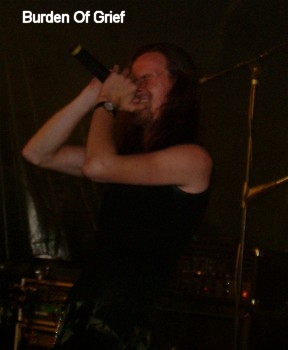 Auch BURDEN OF GRIEF habe ich schon mal gesehen. Leider kann die Band nicht ganz den Level der beiden Bands zuvor halten, und so ist es merklich leerer geworden. Trotzdem gefällt mir die Musik von BURDEN OF GRIEF gut. Als absolutes Highlight der Show ist aber eine Coverversion von "Master Of Puppets". Ich meine beim letzten Auftritt den ich von BOG gesehen haben, hat man es nicht hinbekommen den Song ganz zu spielen und man ist beim Solo einfach in ein neues Stück übergeleitet - aber an diesem Tag wurde der Song ausgespielt. Auch die eigenen Produktionen können bestechen, so wurden z.B. "Demized" oder "Reborn" zu absoluten Nackenbrechern. Als Zugabe gab es dann noch eine Coverversion und zwar "Prowler". Ein sehr gelungener Auftritt von BURDEN OF GRIEF, der wiederum nichts zu wünschen offen ließ. (Willy)