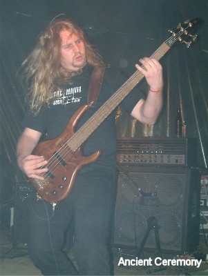 Den Abschluss einer gelungenen Veranstaltung geben uns ANCIENT CEREMONY. Inzwischen liegen wir deutlich hinter dem Zeitplan, so dass ich doch schon deutlich zu müde bin um noch richtig aufmerksam zuhören zu können. Aber die Musik von ANCIENT CEREMONY überrascht mich ein wenig, da ich mir die Musik deutlich anders vorgestellt hatte, als das was ich hier hörte. Auch ANCIENT CEREMONY spielten eine METALLICA Coverversion. Diesmal hörten wir "Creeping Death", was für die wenigen Fans, die es bisher noch ausgehalten haben (nicht wegen der Musik wegen, ich meine die noch wach sind), das Highlight der Show von ANCIENT CEREMONY darstellt. Der Gig von ANCIENT CEREMONY war gut, allerdings hatte ich nun wirklich stark mit der Müdigkeit zu kämpfen und verließ die Scheune noch während des Auftrittes. Doch da wir direkt hinter der Scheune gezeltet hatten, habe ich noch alles mitbekommen und man muss sagen, von dort war der Sound richtig gut. Die Band gab dann noch zwei Zugaben und dann verkroch sich auch die Band ins Zelt um zu schlafen. (Willy)