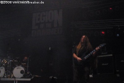 Aufgrund übermäßigen Alkoholkonsums kam ich leider etwas zu spät zu meiner neuen holländischen Lieblingsband LEGION OF THE DAMNED. Und das, obwohl ich eigentlich fast zur Bühne spucken konnte von unserem Zeltplatz aus. Wie auch immer, ich war zu spät und das war ärgerlich. LOTD prügelten sich souverän durch ihren aktuellen Nackenbrecher "Malevolent Rapture", und das Publikum war begeistert und ging voll mit. Sänger Maurice und seine Recken zockten Hits wie „Into the eye of the storm“,“ Bleed for me“ und natürlich durfte auch „Legion of the damned“ als krönender Abschluss nicht fehlen. Abschließend bleibt mir nur zu sagen: Hammer diese Holländer. Aber das sollte nicht das einzige Holländische Highlight dieses Wochenendes bleiben. (Tino)