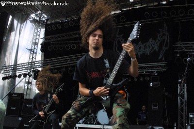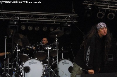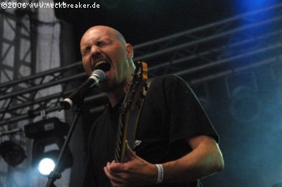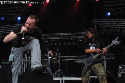 2006 taten sich aber einige erhebliche Mängel in Punkto Organisation auf, die nicht unter den Tisch fallen dürfen! Dazu aber später mehr, zuerst soll unser Fokus auf dem wichtigsten Aspekt eines Festivals liegen, nämlich der Musik und den Bands. Wobei hier jeglicher Kommentar über die Soundqualität der einzelnen Auftritte aussen vor gelassen werden soll, da sich auf einem Festival der Sound eh von allen Stellen anders anhört, so an: