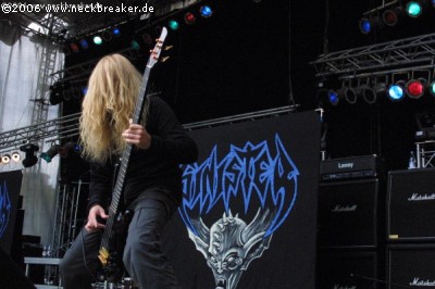 Nach der alles zerstörenden Vorstellung auf dem Summer Breeze eine Woche zuvor, legte Mister David Vincent und seine Mannschaft auch das UFTG 2006 in Schutt und Asche. „Rapture“, „Domination“, „Where the slime live“, „God of emptiness“, die Liste der Death Metal Perlen ließe sich beliebig weiter führen. Musikalisch über jeden Zweifel erhaben, strahlen MORBID ANGEL etwas aus, was kein anderer schafft, unbeschreiblich, okkult, mystisch und einzigartig! Und über allem thronend, DER Death Metal Frontmann schlechthin, Dave Vincent! Mit höllisch tief brummendem Bariton werden Göttersongs intoniert und der Death Metal zelebriert. Das ist Death Metal, DAS ist Death Metal… DAS… ist Death Metal!!! (Bernie)