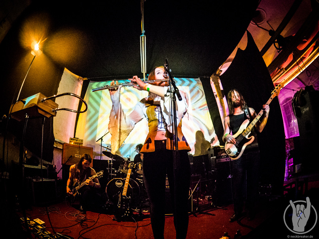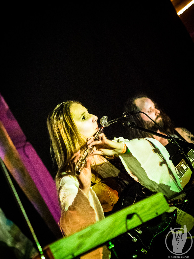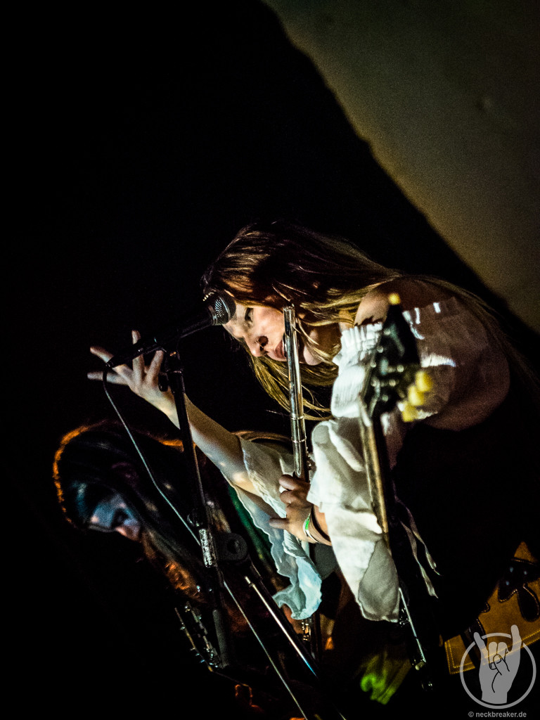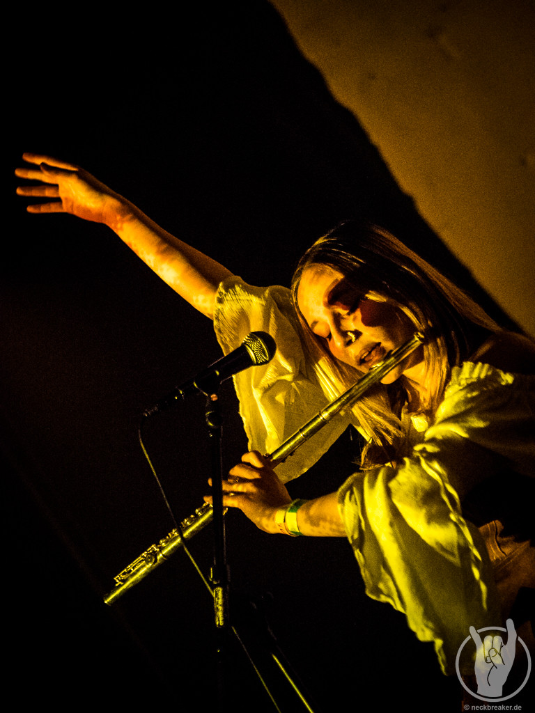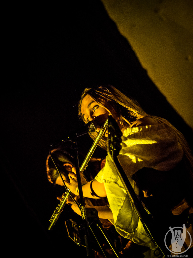 FAUN mochte ich immer ganze gerne, auch wenn ich mich jetzt nicht als super Fan bezeichnen würde. In den letzten Jahren habe ich sie aus unerfindlichen Gründen etwas aus den Augen verloren, daher wollte ich sie nun unbedingt sehen, wenn sie schon so nah auftreten. Pflichtbewusst habe ich mir auch gleich das neue Album gekauft, damit wir an dem „aus den Augen verlieren“ arbeiten können. FAUN sind eine Band, zu deren Musik man sich wegträumen kann, aber sie ist auch sehr tanzbar. Entsprechend doof gucke ich aus der Wäsche, als ich in die Neue Gebläsehalle komme und den Saal bestuhlt vorfinde. Was soll das denn? Ich bin so verwirrt, dass ich erst mal nicht kapiere, dass die Stühle auch noch markiert sind und es keine freie Platzwahl gibt. Nun gut.