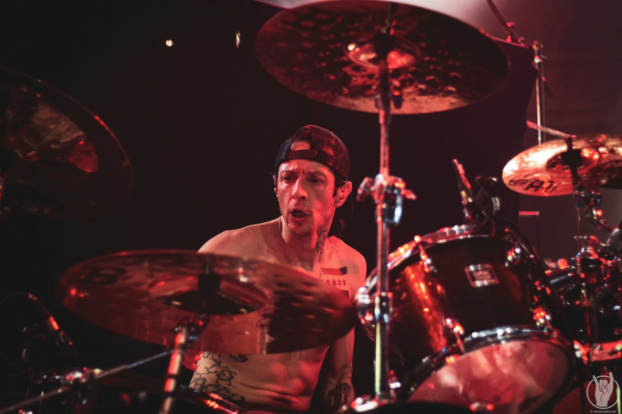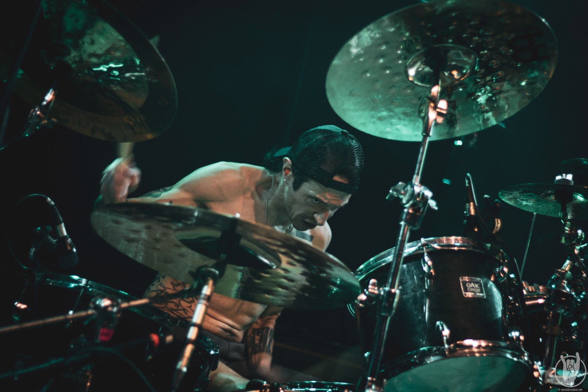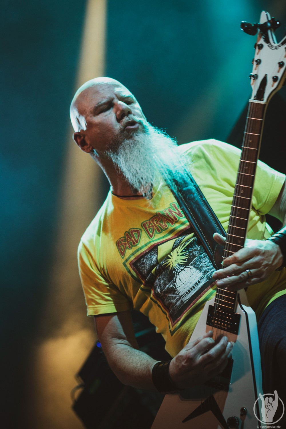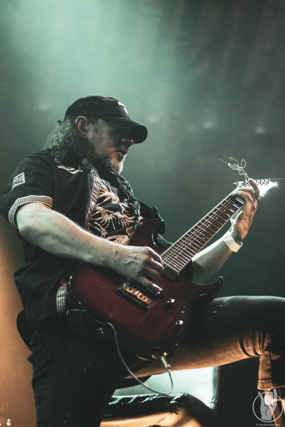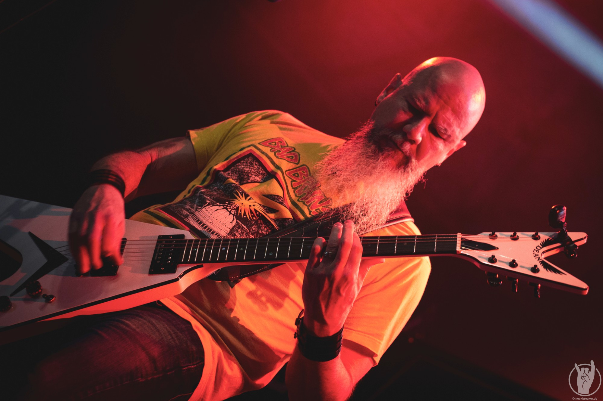 Wie gewohnt verschwand Blitz zwischen den Gesangparts eilig hinter die Marshall-Türme, vermutlich um ein paar Züge an der Zigarette zu tätigen. Oder sollte er schon in dem Alter sein, in dem er regelmäßig an den Sauerstoff muss? Niemals!