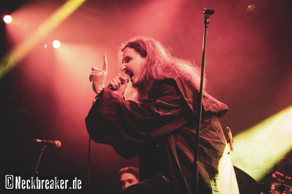Mit Kutte und Kapuze kam Sänger Zoki auf die Bühne und die noch karg besetzte Garage kam allmählich in Bewegung. Ihr leicht progressiver Metal im Midtempobereich reizte die Anwesenden nicht unbedingt zum Äußersten, aber immerhin gab es Applaus und erfolgreiche Mitgrölparts. KEOPS waren froh, den Opener dieser Hammertour zu machen und zeigten sich sehr agil und spielfreudig auf der Bühne. Das ist wohl auch dem Alter geschuldet, denn sie senkten diesen Faktor ein wenig, auch beim Publikum.