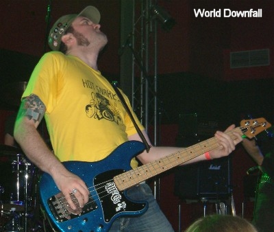 WORLD DOWNFALL sind live immer eine Bank. Auch in Essen heizten die Death Grinder der Meute kräftig ein und die ging schon ganz ordentlich ab. Stücke wie "Life's Missing Content", "Your Shadow Moves Faster Than Mine", etc. sorgten schnell für mächtig Bewegung in den vorderen Reihen. Und Lohm & Co. sah man den Spaß daran deutlich an. Wieder mal ein starker Gig der ruhig etwas länger hätte dauern dürfen. Aber nach den 45 Minuten wollten die anderen auch noch ran und die von vielen geforderte Zugabe musste leider ausbleiben.
