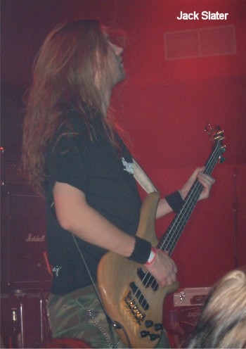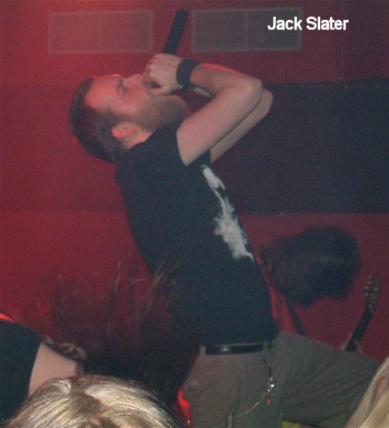 Für JACK SLATER gilt ähnliches, auch die Bonner Hoppelhasen wissen mit reichlich Energie den Anwesenden einen kräftigen Tritt in den Arsch zu geben. Auf die Dienste von Gitarrist Sobo musste die Band an diesem Abend verzichten. Aber mit Timur von Guerrilla gab es gleichwertigen Ersatz an der Klampfe. Apropos, beim Cannibal Corpse-Cover "Stripped, Raped And Strangled" wurden die Bonner zusätzlich vom JaKa-Gitarristen Robert Nowak unterstützt. Ansonsten gab es eine Menge eigene Songs wie "Playcorpse", "Falscher Hase" "Für Elise", "Schlachtplatte" etc.. Bei dieser starken Vorstellung war nicht umsonst eine größere pogende Menge auszumachen.