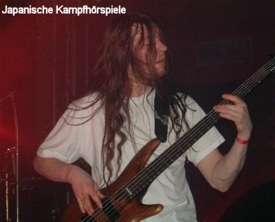Was dann folgte war endgültig die totale Vollbedienung in Sachen Grind. JAPANISCHE KAMPFHÖRSPIELE sind die ungekrönten Break-Könige. Mit ihrem wilden Grindcore räumten die Krefelder total ab. Völlig ab ging Gitarrist Robert Nowak der sich nicht nur ab und zu auf den Boden warf, sondern auch rücklings auf dem knieenden Hofi, Mann hinter den JaKa-Kulissen, spielte. Dass das Turock bei so einem Gig völlig austickte ist selbstverständlich. Inzwischen gehört die Band nicht umsonst zur nationalen Grind-Spitze. Die Setlist war gut bestückt und ich habe lediglich "Scheiße, der Lehrer" vermisst. Ganz stark und für mich der Höhepunkt des Abends.