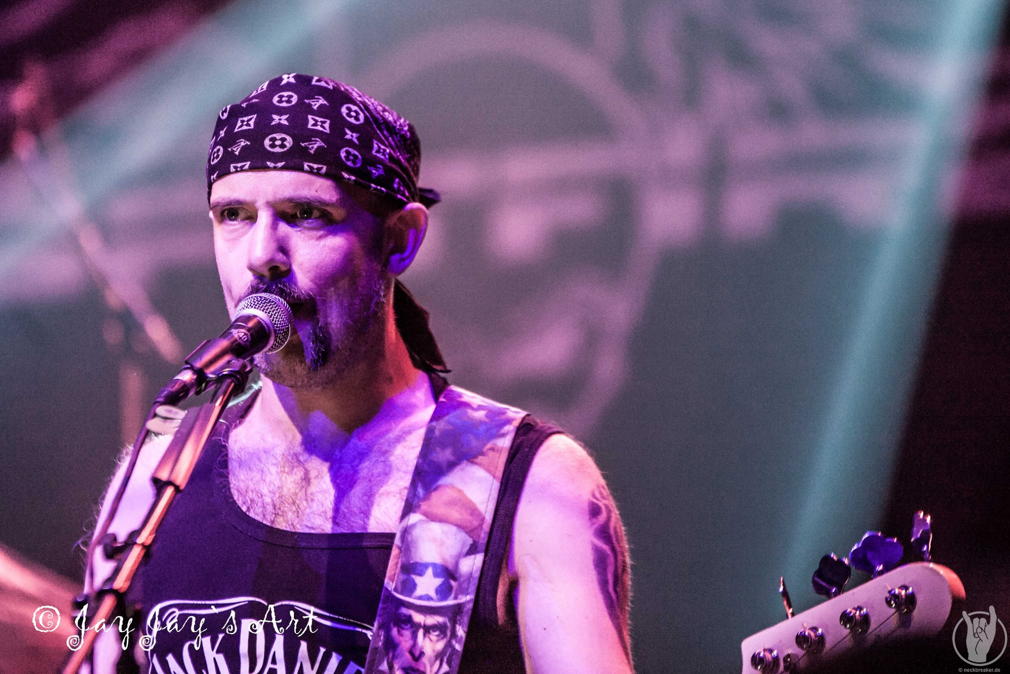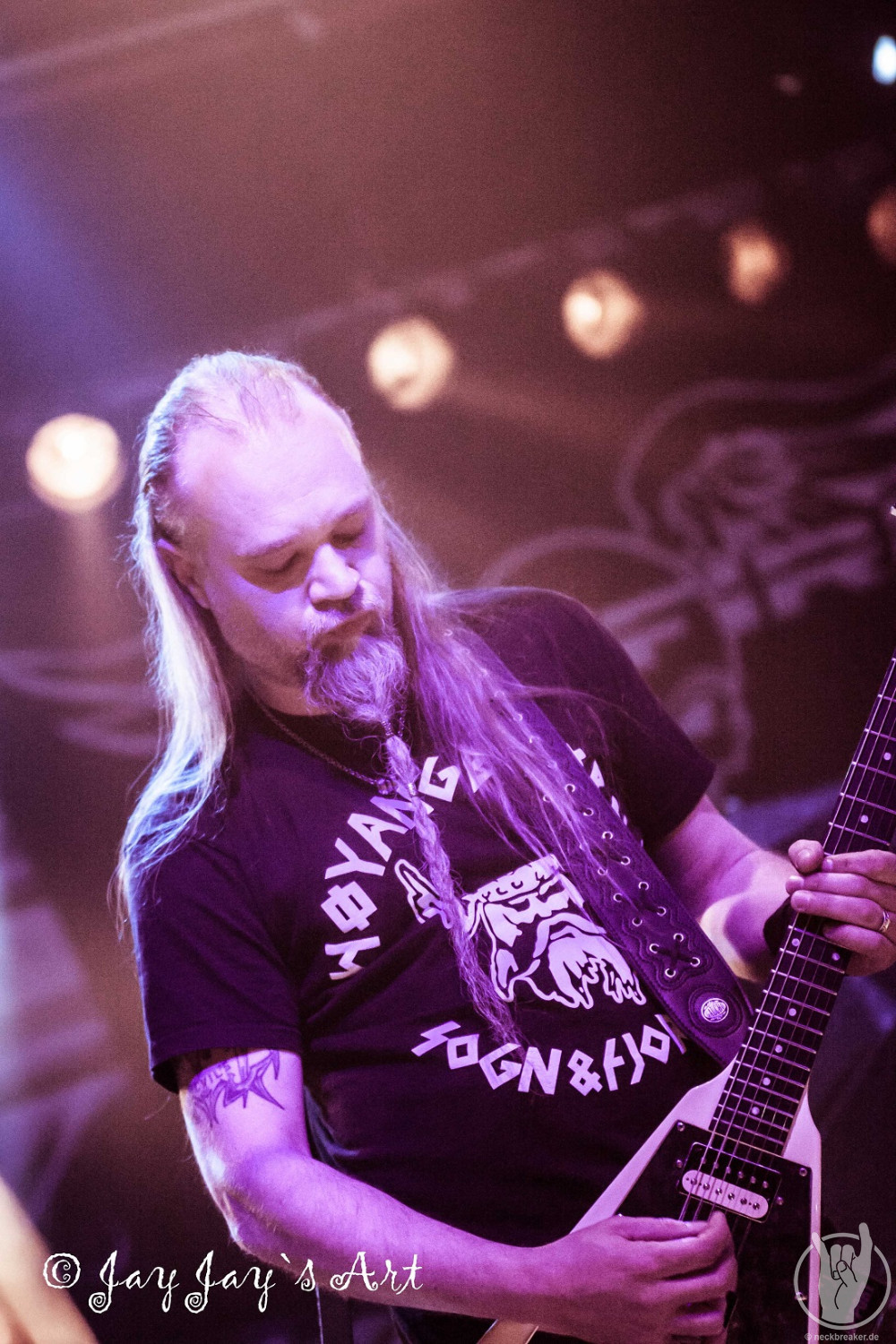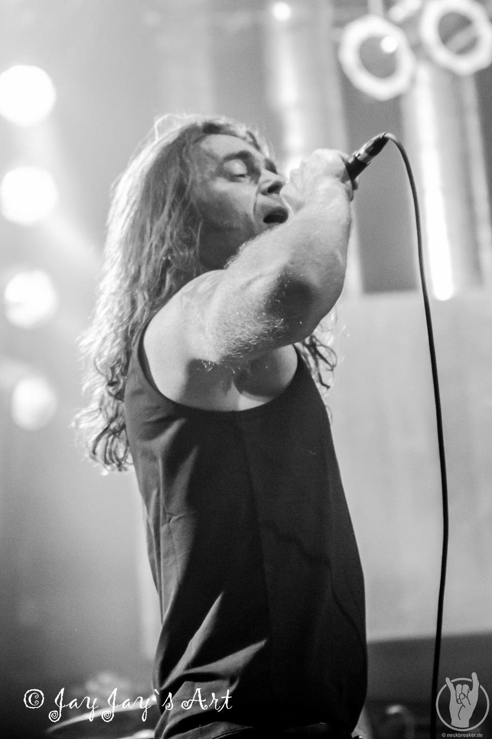 Die Norweger lieferten insgesamt eine gute, wenn auch nicht überragende Show. Allerdings ließ sich das Publikum davon überhaupt nicht beeindrucken und kam überhaupt nicht aus dem Quark. Da war nicht ein einziger im Publikum, der mal die Faust erhoben oder die Rübe geschüttelt hätte. Mir taten SPITFIRE daher schon fast ein bisschen leid. Da hatten sie schon mal das Glück, als Vorband eine fast volle Halle vorzufinden und dann kam vom Publikum überhaupt nichts zurück, auch wenn die einzelnen Songs brav mit Applaus honoriert wurden. Leute, wenn Ihr schon klatscht, dann bedeutet das doch, dass Ihr es gut findet - dann zeigt das doch bitte auch während der Songs und macht mit. Nach relativ kurzen 35 Minuten war der Auftritt der Norweger dann auch vorbei, und trotz der verhaltenen Publikumsreaktionen sprach der Sänger doch tatsächlich von "the best audience" - so viel Professionalität muss bewundert werden.